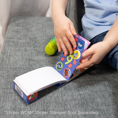 Reîmprospătează și personalizează orice ștampile cu autocolante Melissa & Doug WOW! (nu incluse) cu un set de 200 de autocolante – oriunde, oricând. Setul include un caiet de activități mini de 24 de pagini (aproximativ 5.5 cm x 11 cm) și un pachet de autocolante cu 200 de modele diferite pentru a reumple toate ștampilele WOW!; compatibil cu toate ștampilele WOW!; pur și simplu introdu în cartușul ștampilei și începe să ștampilezi. Fiecare pachet de autocolante de 200 de bucăți conține 100 de modele unice, transformând fiecare autocolant ștampilat într-o surpriză. Autocolantele WOW! nu sunt reutilizabile, dar pot fi îndepărtate cu ușurință la nevoie. Acest lucru face din WOW! un set minunat pentru călătorii, fără murdărie, un instrument de creație, un jucărie interactivă și o piesă de colecție; brevet în curs de aprobare. Un cadou excelent pentru fete și băieți cu vârste cuprinse între 3 și 7 ani, pentru distracție interactivă, fără ecran, și jocuri creative.