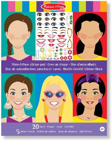 Melissa & Doug Caiet de autocolante pentru a crea fețe – Fețe de modă, 20 fețe, 5 foi cu autocolante