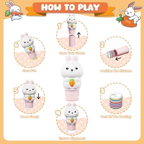 Descoperă acest set distractiv de ștampile pentru copii: setul de autocolante conține ștampile cu iepurași, 800 de autocolante ușor de îndepărtat și un caiet de activități cu 24 de pagini. Designul nou al jucăriei de ștampile folosește tema iepurașilor, extrem de populară printre copii.