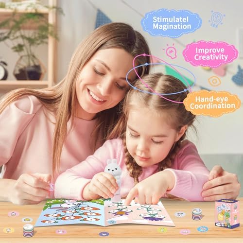 Învățare prin joacă: activitățile distractive de ștampilat și învățare includ numărătoarea, socotitul, potrivirea, căutarea și găsirea și multe altele. Caietul de autocolante încurajează învățarea și abilitățile creative ale copilului tău într-un mod variat.