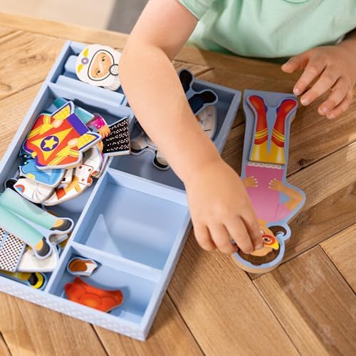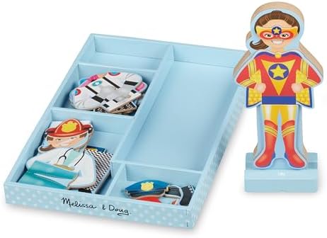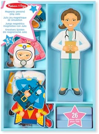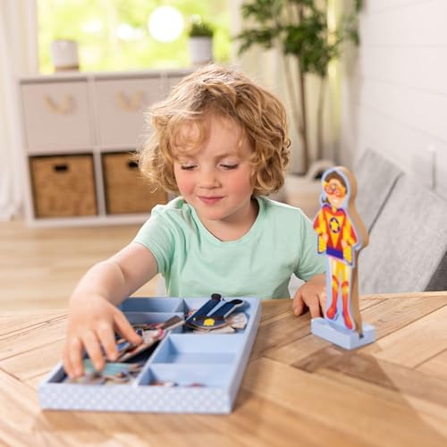 Păpușa magnetică de îmbrăcat din lemn cu opt ținute diferite | Conține o păpușă din lemn, un suport pentru păpușă, 24 de haine magnetice și o tavă pentru depozitare | Julia merge la birou; îmbrac-o astfel încât garderoba să-i aducă succes | Dezvoltă abilitățile motorii fine, abilitățile de numărare și de sortare, stimulează expresia creativă și încurajează jocul imaginar. Transformă-ți copilul într-un mic creator de modă cu această păpușă de îmbrăcat din lemn!